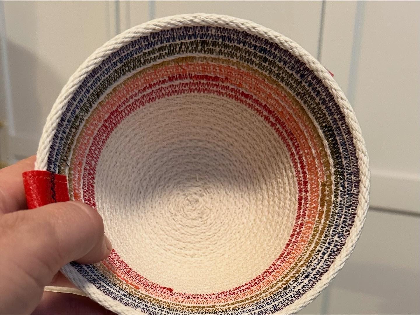 We take pride in making these bowls to order in our home studio and use 100% cotton rope for stability. Actual shape may vary slightly as they are each made individually by us with machine and hand stitching.
